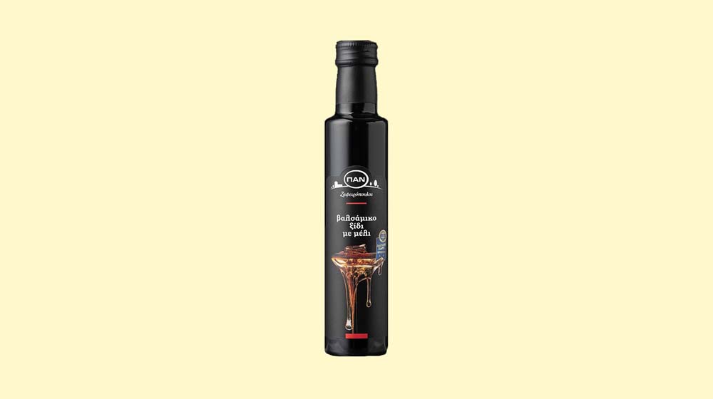 Βαλσάμικο ξύδι με μέλι, χωρίς προσθήκη ζάχαρης και χωρίς γλουτένη.